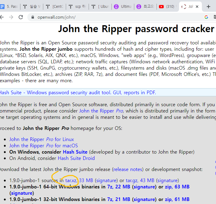 -> 패키지 다운로드 (http://www.openwall.com/john/)