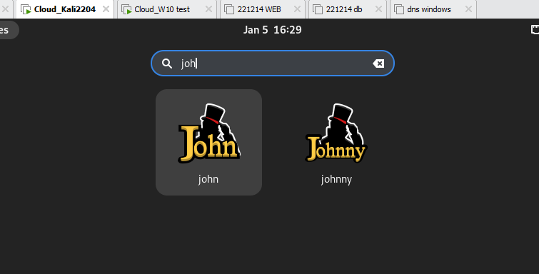 : Kali의 주 메뉴에 'John'과 'Johnny'가 있는데 20.x 버전부터 Johnny는 제외되었다.(별도로 설치)